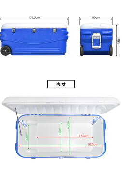 ブランド:フィールドア(FIELDOOR) サイズ: (約)103.5cm×50cm×48cm 重量:(約)12kg 材質: ポリエチレン / ポリウレタン / ポリプロピレン 容量: 150リットル 耐荷重: 150g移動に便利なキャスター付き!大容量150LのXXLサイズのクーラーボックス FIELDOOR キャスター付クーラーボックス 大容量150L 商 品 詳 細 ブランド フィールドア(FIELDOOR) サイズ (約)103.5cm×50cm×48cm 重量 (約)12kg 材質 ポリエチレン / ポリウレタン / ポリプロピレン 容量 150リットル 耐荷重 150kg MADE IN CHINA ※商品は、モニターによって色合いが異なって見える場合があります。